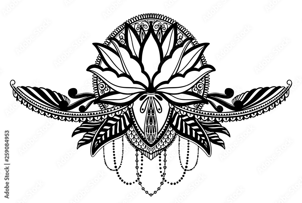 Lotus Flower Ethnic Symbol Black Color In White Background Tattoo Design Motif Decoration Element Sign Asian Spirituality Norvana And Innocence Stock Vector Adobe Stock