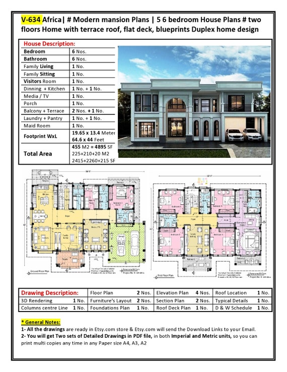 V 634 Africa Modern Mansion Plans 5 6 Bedroom House Plans Etsy